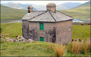 I speedily set off towards Burnmoor Tarn and Burnmoor Lodge just above it. The building is quite substantial and securely locked and boarded up. I walked past and headed for the SW end of the tarn then straight up the steep climb up Illgill Head. About half way up there was a slight breeze and I reckoned I would safe from tormenting midges. I was right; I sat by a boulder and ate my sandwiches with the expanded views below. |