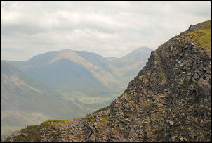The muggy weather made for a hazy view but I didn’t mind, it was pleasant just sitting there. I set off again on my direct ascent. The gradient eased and I found myself on the final approach to Illgill Head. I’d done the hardest part of the walk and now there was a flat undulating path all the way to Whin Rigg, except for the last bit. In places I kept to the ridge edge so I could see down into Wast Water but the haze meant that I couldn’t even see the coast. |