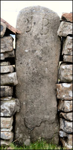 It was a steady climb and the gradient eased a while below the summit. At the gate I turned left to follow the wire fence in a straight line to Little Whernside. The going soon became very wet and I had to cross the fence to try and get away from the black mud. The summit flat area of the mountain was even worse, as I had to make many wide detours to get round the deep boggy swamps. After crossing the saddle at Long Hill Syke Head the ground began to improve a bit and the climb of Great Whernside was much more enjoyable. I came to a gate hole in the stone wall which is were the main path crosses over and descends towards Kettlewell. I kept to the wall and followed up the ridge. Near the summit was a large stone post embedded in the wall with two letters carved in the top. They looked like Y B but the Y is debatable. |