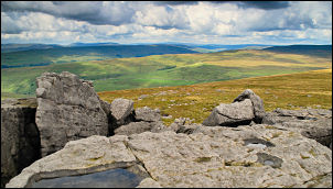 Now I had good views all round, even if the sun was mostly obscured by clouds. Up ahead was a nice outcrop of grey rocks which made a very nice lunch stop. I continued past the Ordnance Survey trig point and on to Stone Head Crag. |