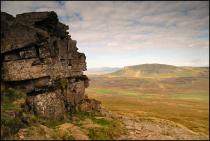 Ingleborough and Pen-Y-Ghent from Fountains Fell. |