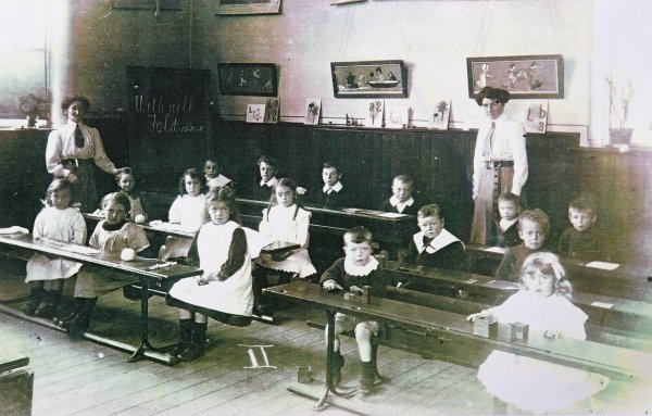 Withnell Fold School. 1911. The teachers are Miss Jenkins and Miss Greenhalgh