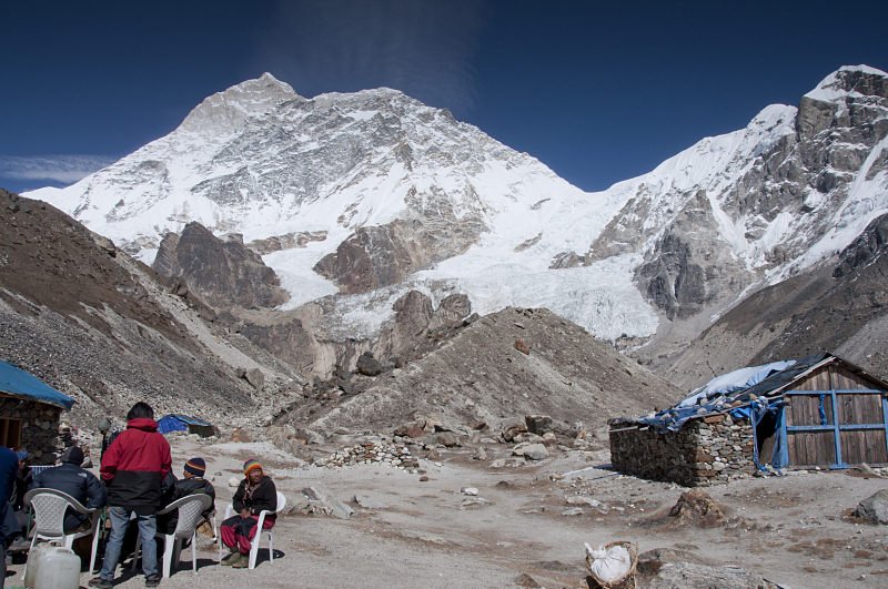 Wide view of Makalu base camp area with Makalu in the background