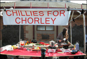 Tue 26 Feb 2008 Chorley Market is worth a visit, even if its just to see the colours. A TV programme was also being filmed at a 'Chillies for Chorley' stall.