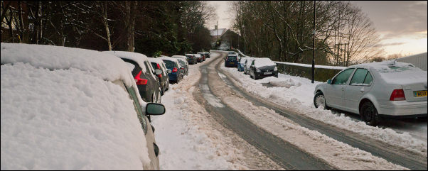 Cars parked on Dolphin Brow, Whittle-le-Woods |