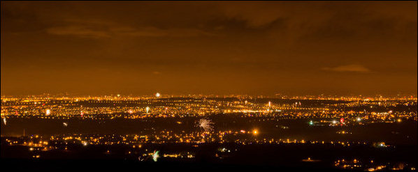 the firework celebrations for the 2014 New Year from Hurst Hill