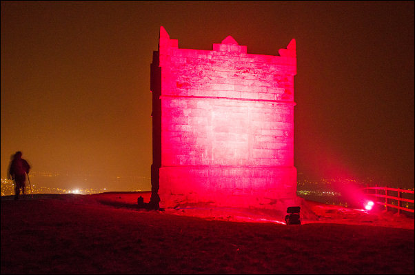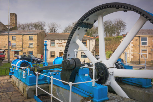 Outside India Mill in Darwen is this refurbished 1905 Cross