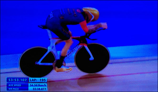 The new World Hour record holder. Cycling 54.526 km (33.88