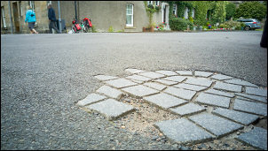 tarmac on The Scores, St Andrews, Scotland marks the spot where