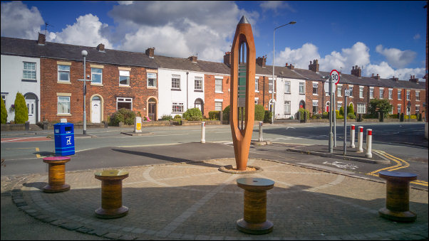 shuttle & bobbins. It's at the junction of Stanifield Ln & Mill