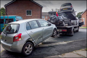 being towed away after someone ran into it. |