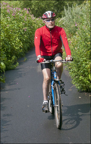 Pete cycling the Guild Wheel cycle route in 2011 |