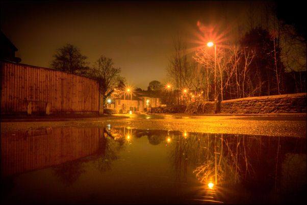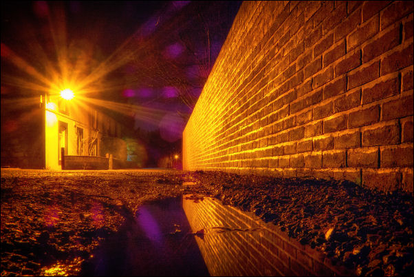 Wall reflection on Kem Mill Lane, Whittle-le-Woods |
