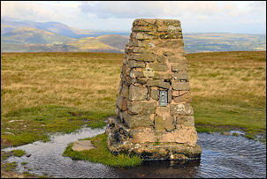 It climbed steadily up Helton Fell and I eventually came to High Street and then had a nice view of the fells to the west as well as east. The weather was a bit mixed but rain hadn’t started yet. The cloud remained high so I was able to get good distant views of my next objective, Loadpot Hill. The main path follows High Street to the right of the Hill but that means missing the summit trig point. I left the path for a while to investigate an interesting depression called Loadpot Hole. From there I took a direct line to the summit and trig point. Continuing south I came to the remains of Lowther House, which used to be a shooting lodge. The base of the stone chimney and some of the concrete flooring is all that remains. |
