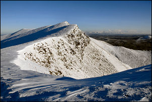 along the snow covered ridge to Knowe Crags. The descent of Blease Fell