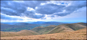 A faint path follows the fence up on to Calders. It wasn’t particularly clear weather but the distant views were still there. I could see the radar station on Great Dunn Fell to the north and Ingleborough to the south. Over Calders I followed the main path south then took the indistinct Arant Haw branch. |