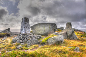As I gained height the ground became better with some interesting rocky outcrops. At Wolfhole Crag there were even more and the O.S. trig point seemed to be perched on top of a pile of boulders. Presumably the surrounding area has eroded away. I followed the wall for a while until I reached a fork in the path. To the right was White Crag but I was following the fence to the left towards the old Roman Road. It was fairly rough going in places and would be very boggy in wet weather. |