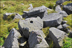 After Brennand intake I managed to cross the river and took a direct steep line up Fox Clough and headed for Millers House. It’s not the ruins of a house but another interesting rocky outcrop. Amongst the rocks were some part made mill-stones. It must be good stone because the logistics of getting the massive stones off the moors to where they’d be needed must’ve been incredible. A path marker post pointed in the direction of Wyresdale Tower but I soon lost the faint path. Fortunately the ground wasn’t too bad but crossing White Moor was difficult and incredibly wet. At Hind Hill the path turned north and things improved underfoot. I was on nice green pasture as I descended to Gilberton where the farm access track took me back to Tarnbrook. There was still no one about as I passed through to cover the short stretch back to the car. |