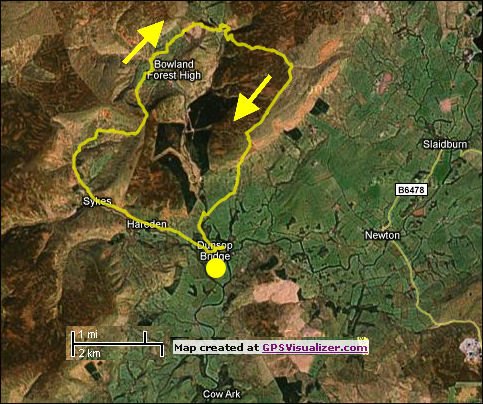 Dunsop Bridge, Whin Fell, Brennand, Whitendale, Beatrix Fell, Bowland.
