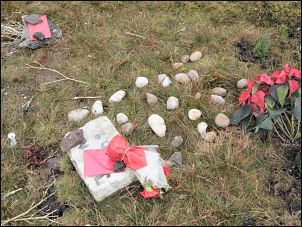 shallow hollow was a white stone with 'JOAN 2008' painted on it.