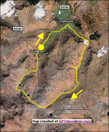 Seathwaite, Stonethwaite, Langstrath cave, Cam Crag, Esk Hause, Sty Head, Cumbria. Wed 14 Apr 2010