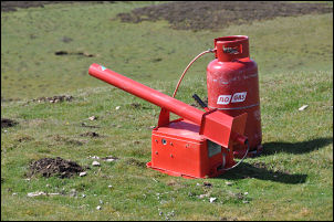 I thought someone was out shooting because every few minutes a gun shot would go off but I couldn’t see anybody. Further up the hill the bangs became louder but still no sign of anybody. Then I found out why. A short way from the path was a gas canister connected to a bird scarer which was a metal device that ignited a gas charge which sounded exactly like a gunshot. Greenhaw Hut was clearly visible on the horizon so I followed the moorland track up to it. |