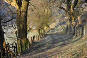 I set off south along a frozen and slippery lane until I came to the main A685. I was now able to walk on the grass verge and was glad to head up the track to Low Borrowdale and leave the noise of the M6 motorway behind. It was still cold with lots of frost on the ground and ice on the road. I rounded the bend in the valley to see Low Borrowdale farm ahead. When I reached it there were parked vehicles about but no signs of life. It certainly didn’t seem to be a working farm as there were no barking dogs around. I continued along the track which is now unsurfaced and soon became a green track all the way to High Borrowdale Farm. This farm has been a ruin for many years but the main house has been stabilised and a metal gate fitted to the ruin to prevent entry. |