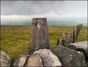 Instead of turning back I headed over the fell in a loop to join the track upwards. It soon reached the wall and ran parallel to the summit ridge and gate. Through the gate it continued for a while then fizzled out but a reasonable path was evident and I followed it up the ridge to Thack Moor summit. The wall gave some very welcome shelter from the westerly wind which was quite cold (8degC) for the time of year. The trig point was on the other side of the wall and there was no crossing point, which I found puzzling. |