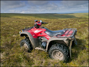 Two abandoned railway routes are crossed before reaching the track and the interesting house of Tortie. I turned right and followed the track to the substantial group of houses at Howgill. A walker was there talking to one of the locals. I could see another walker heading up the fell. The whole area is of abandoned quarry and mine workings which the houses would originally have been connected with. I followed a track up the fell, heading roughly towards Cold Fell. The walker I’d seen earlier was still up ahead. Behind I heard the sound of and approaching quad bike and as it passed I noticed it was driven by the walker I’d seen chatting to a local earlier. Further up the track I came to the quad bike which was parked on the moor. |