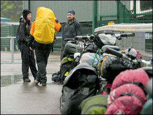 torrential rain. All the cycles waiting for the ferry were parked