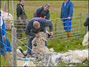 maintained. I stopped to watch a group of men and one woman shearing sheep by the