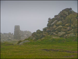 It wasn’t raining but within minutes I was in cloud. Binsey summit is at 447m and by 350m I could only see a few metres in front. I pressed on regardless to the summit. This time I checked out both summit cairns then carried on over the top and on to the descent of the other side. |