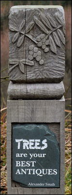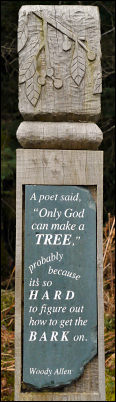 | Walking through Hospital Plantation I saw several thoughtful quotes cut in slate and mounted on wooden posts. | ||||