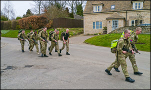 group of fully kitted soldiers were out training including rifles,