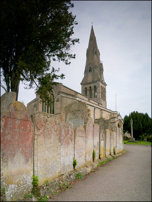 interesting row of gravestones by the entrance. An inscribed stone