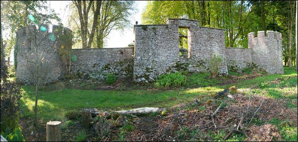 The mansion of Hwith was demolished in 1927 and the remaining buildings are hidden behind high walls. |