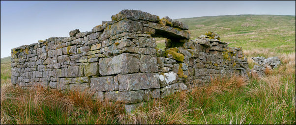 It was probably a shepherd’s shelter at one time but is now a ruin with no roof. I continued over Holmes Moss Hill which was variable underfoot and not good walking. At Rawthey Gill Foot I visited a previous old camp from a back packing trip then headed down the north side of Rawthey Gill. I kept to the river side to have a look at an old barn then reached a faint track that took me to Whin Stone Gill Bridge. Further along is Blea Gill Bridge then the farmyard of Uldale House and its many barking dogs. Over the door the stone lintel had the inscription IS HULL 1828. I stopped to photograph it as the farmer came out. We chatted for a while and he said the full name was Isaac Hull who was a master at the Sedbergh School. The house was re-built by him as a speculative venture as there was a possibility of the track to Garsdale being upgraded to a road. But it wasn’t. A Dales book said it was also a possibility the Settle Carlisle railway could come via Uldale but the dates don’t make sense. |