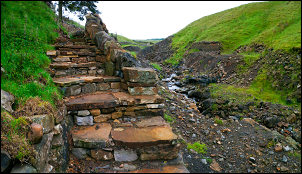 I headed up the Nenthead Mines access road and two men were kitting up with waterproofs in the car park to go underground. The mines are a museum but were closed when I got to the main buildings and seemed to be in receivership. Further up the track it was still possible to walk round the reconstructed waterwheels and crushing plant. |