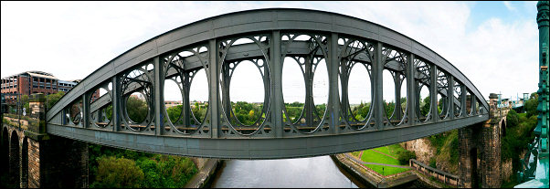 Wide view of the Wearmouth Rail Bridge which spans the River Wear.