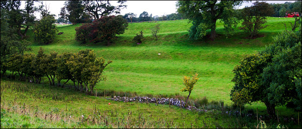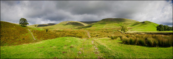 ![]() Looking back on the sunny fells near the end of the walk |