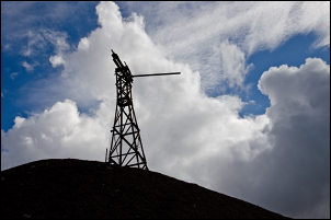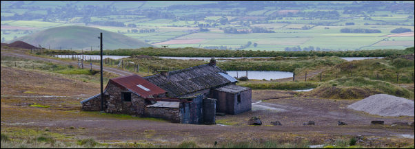 Mudgill Sike is an interesting geological feature. The path follows a diagonal track which descends into the deep valley. Another track can be seen on the other side but the intervening valley bottom is so wet I had to hop across rushy clumps to avoid the water going over the top of my boots. The path started to get steeper then flattened for a while as I approached the final wall where I passed through the gate and on to open fell. A steep path headed to the abandoned Silverband Mine workings. The weather had started to clear as I approached the workings. The Cumbrian fells of the Lake District were visible but cloud was still hanging over Great Dun Fell. Some pylons from the old cableway were still standing and some were lying on the ground. |