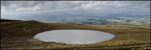 I passed a recently constructed settlement lagoon on the way up and after crossing open ground picked up the main Pennine Way path between Little Dun Fell and Great Dun Fell. |