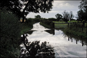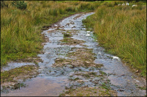 The first part of the track was completely under water and I had to do a balancing act of walking along the top of the wall to get across the shallow valley. The rest of the track across Stubmire Moor to Blancarn was still very wet but passable. |