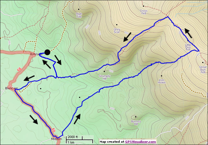 Kirkland, Blancarn, Milburn, New Greuve mine, Little Dun Fell.