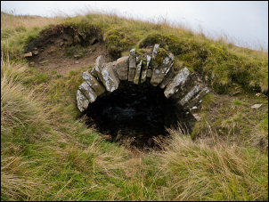 My first objective was to walk along the line of the old flue which runs up the hillside to a remote chimney. The first part of the line is not very obvious. As I’d seen a couple of others in other parts of the country I knew what to look for. The stone built flue would have been a tunnel sunk part way below ground level. A line of rubble marked it and probably due to the lead debris there wasn’t a sign of growth on much of the debris, not even a blade of grass. |