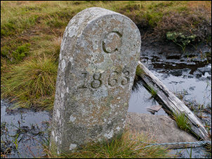 The spot was marked with a stone post marked ‘C 1863’ I followed the fence for a while then left it to head across open moor to regain the county boundary. The map doesn’t show a fence but there were old rotting fenceposts along the boundary line. My next objective was the three county boundary junction. I visited it last year a soon found the spot where 3 old lines of collapsed fence met to mark the junction of Cumbria, County Durham and Northumberland. A small pile of stones marked the spot. I turned west across some old workings and reached the road. |