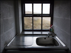Up a side track was a shooting box, or more accurately a shooting house. I decided to investigate as it was the only place I was likely to find some shelter to have my sandwiches. When I got there I was impressed how tidy it was and even better it was unlocked. Inside was very clean and tidy and even though it was still early I took the opportunity to have a comfortable lunch. I descended back to the main track and had to take care on the icy descent. |