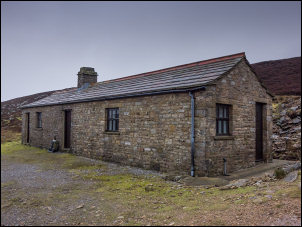 The weather was overcast and very dull. The track was easy going up to Wild Gath where there was an old limekiln by the track which looked more like an old mine addit. The track levelled off but was far from easy walking as the stoned surface was covered in ice. Most of the way I had to keep to the grass on the track side. For a while I had a gloomy view down into the valley bottom but I was soon in low cloud and lost the view. |