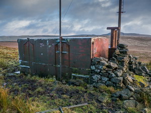 I came this way to visit it again. At the base is what looks like a metal container but it turned out to be some sort of control room. Through a gap in the locked door I could see tables, cupboards and electrical dials. |