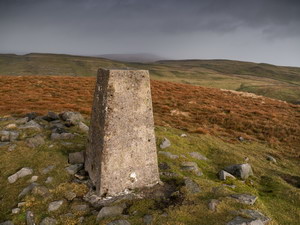 I couldn’t tell if they’d died there or been dumped by the farmer. I headed back up the hill to re-join the summit wall and then along to Rye Loaf Hill where there was a trig post. It was quite windy but it was on my back. |